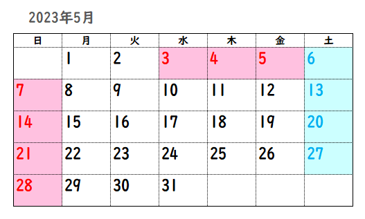5월 첫째 주는 일본의 골든위크의 기간입니다. 올해는 5월 3일(수) ~ 5월 7일(일)의 5일 연휴입니다.