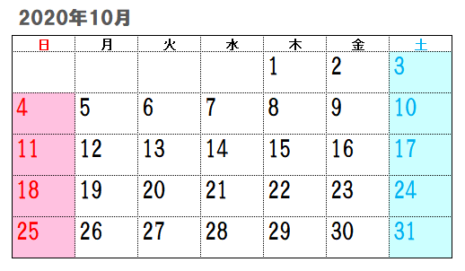 일본의 10월달 캘린더에는 토요일 일요일 외에 쉬는 날이 없습니다.