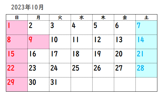 10월 9일(월)은 스포츠의 날로 공휴일입니다.